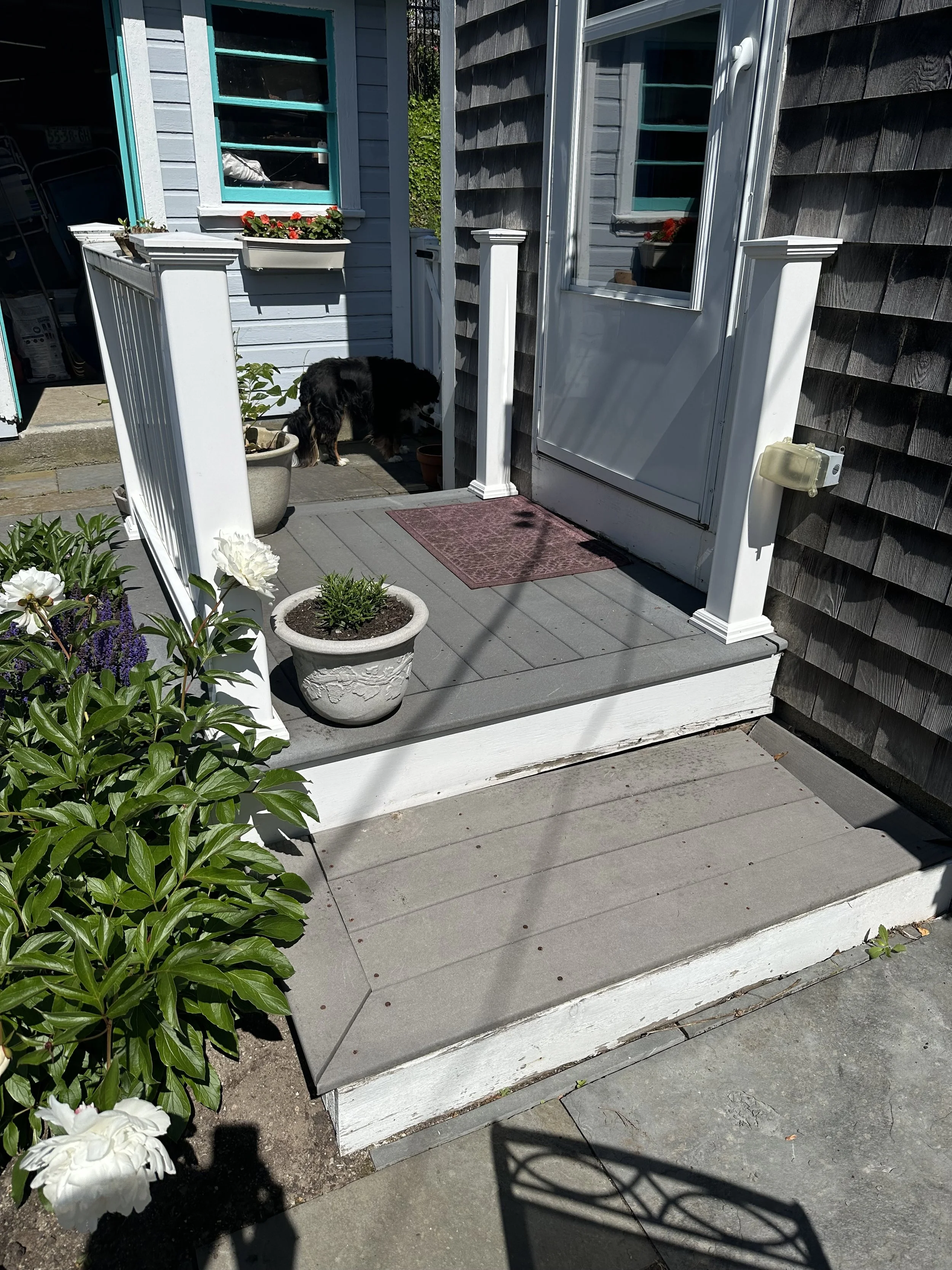 We completely rebuilt this side entrance with weatherproof composite decking and new pvc trim boards.